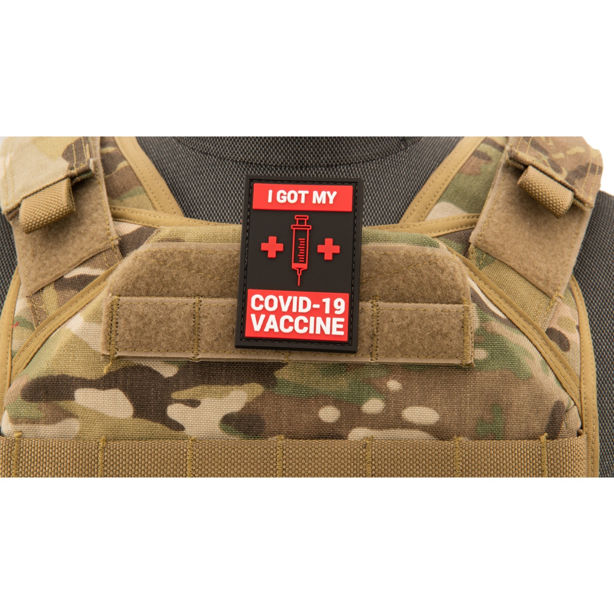 "I Got My Covid-19 Vaccine" Rectangular PVC Patch (Color: Black and Red)
