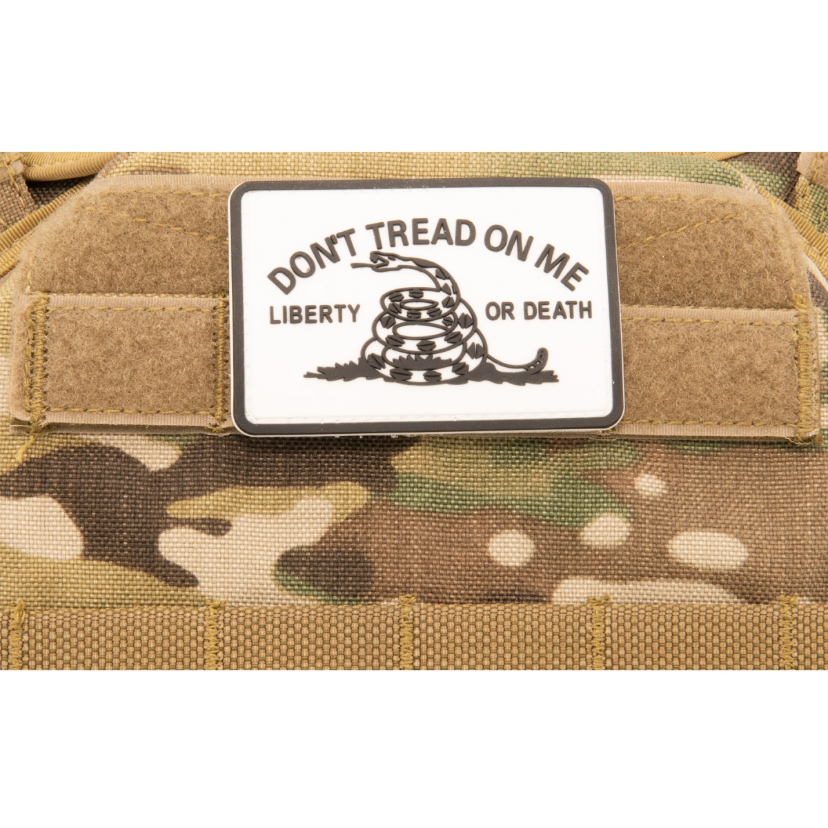 "Don't Tread on Me Liberty or Death" PVC Patch (Color: White)