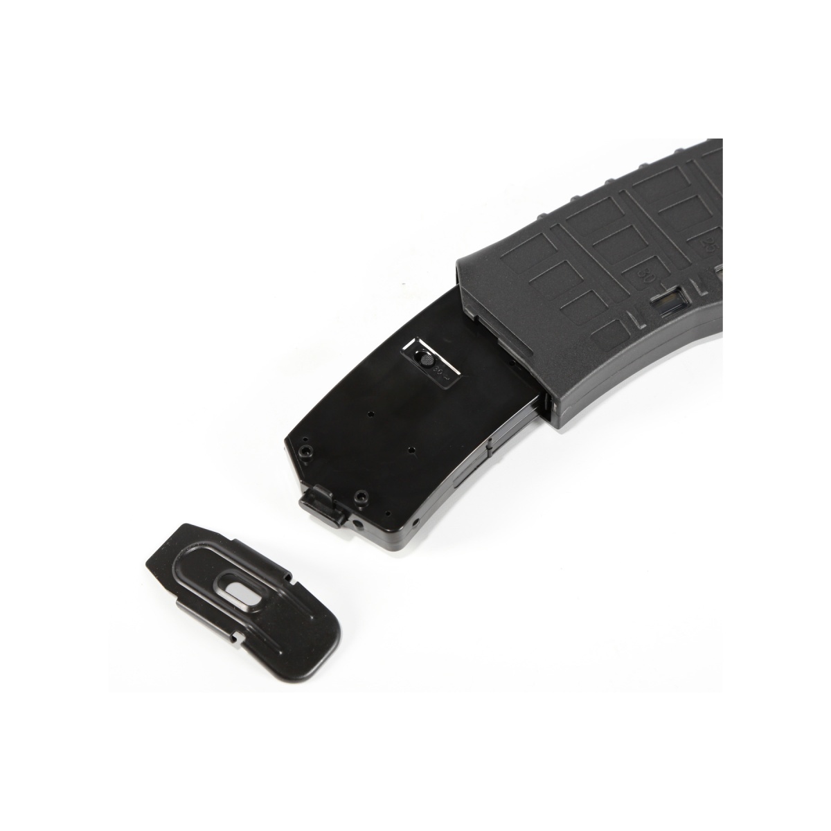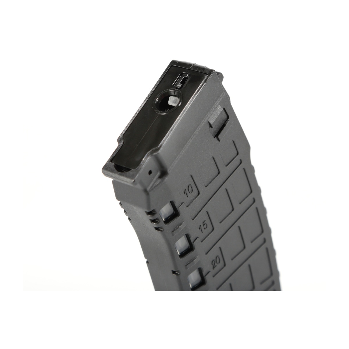 • The variable switch allows the magazine to either hold 135 or 30 rounds for Milsim play or casual play