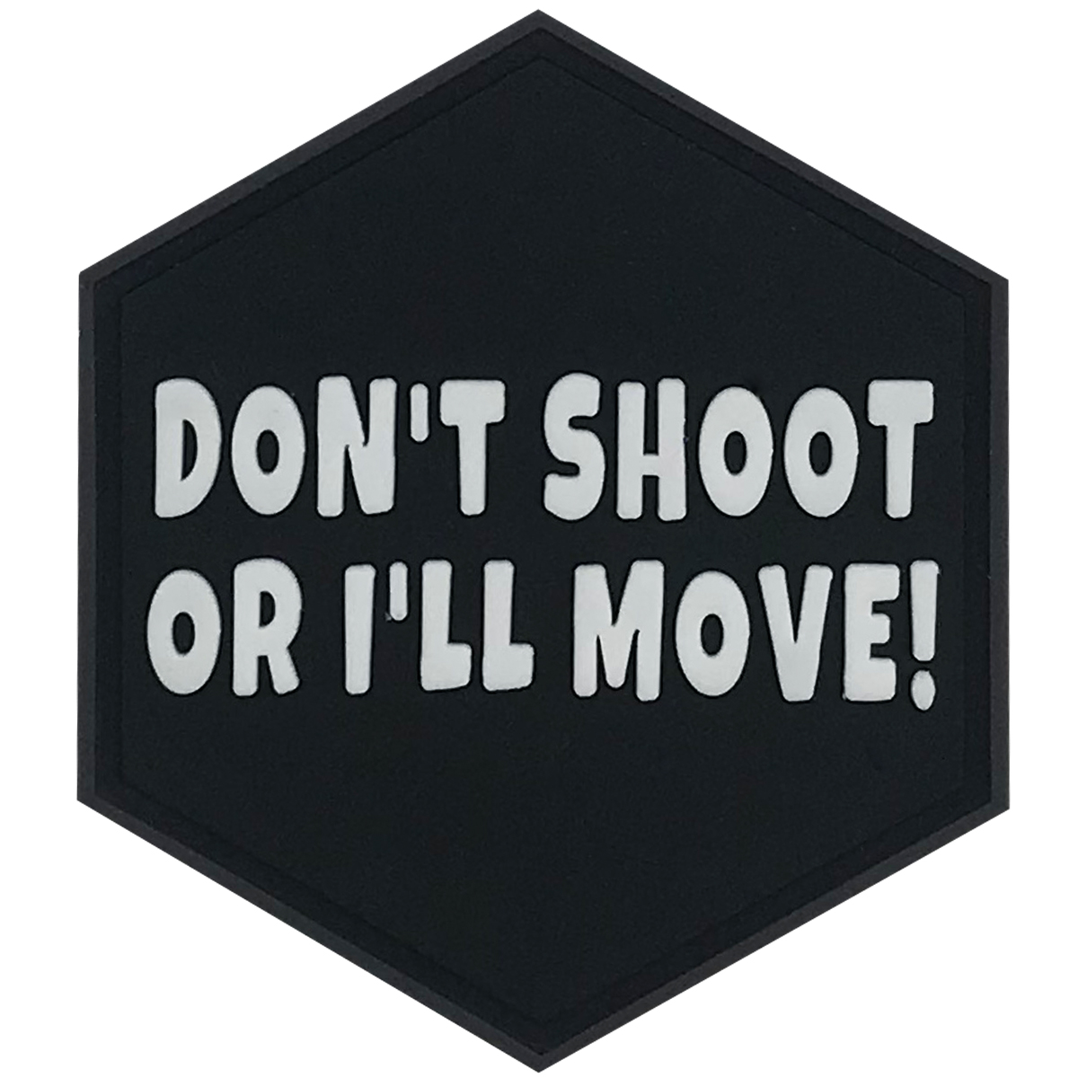 Hexagon PVC Patch "Don't Shoot Or I'll Move!"