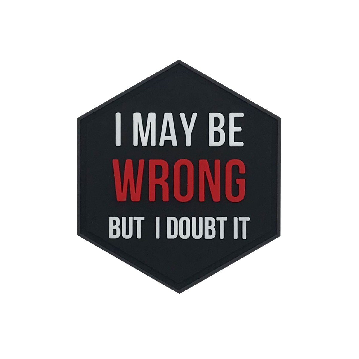 Hexagon PVC Patch "I May Be Wrong But I Doubt It"
