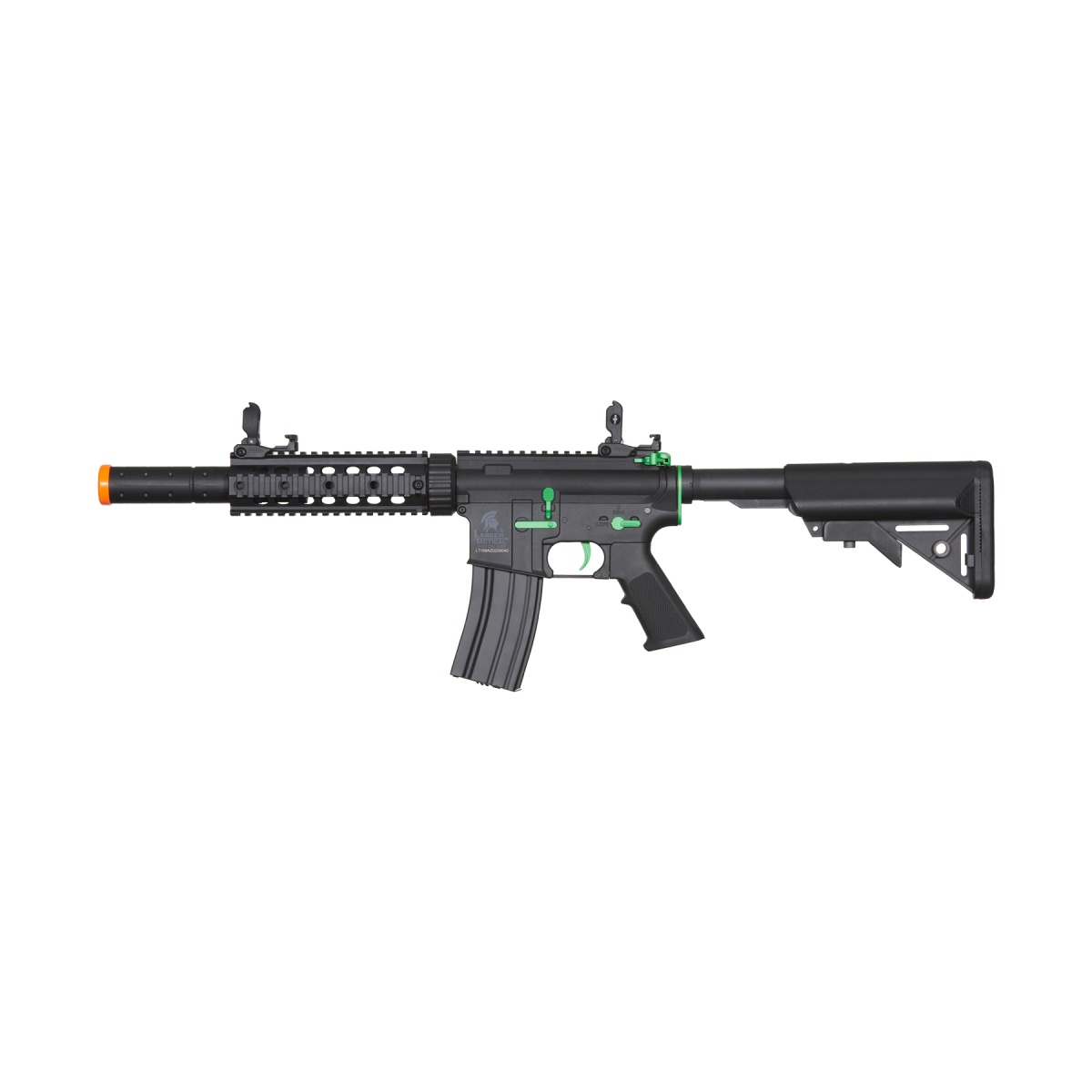 Lancer Tactical Gen 2 M4 SD Carbine Airsoft AEG Rifle with Mock Suppressor (Color: Black / Green)