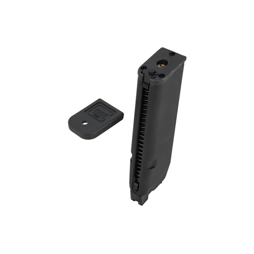 • Magazine baseplate has licensed Glock markings and can be removed to fill green gas