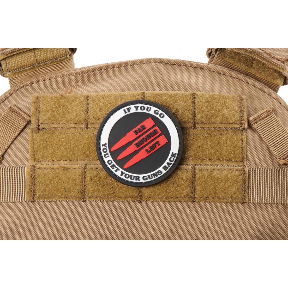 "If You Go Far Enough Left, You Get Your Guns Back" PVC Morale Patch (Color: Red)