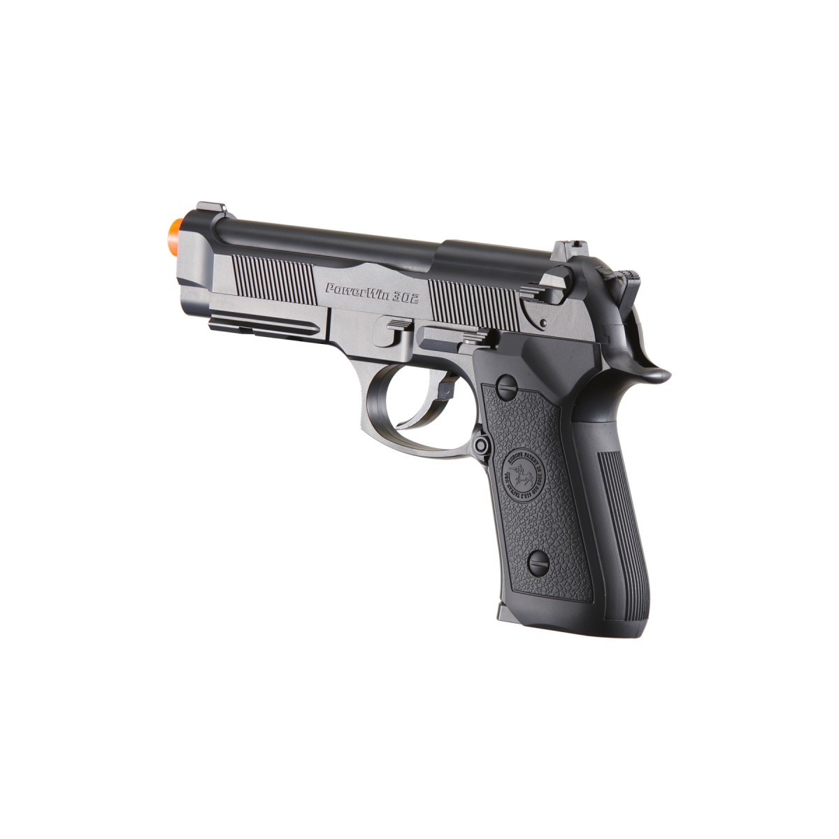 The WinGun 302 Non Blowback M9 Airsoft Co2 Pistol is a reliable and efficient sidearm built for players who want consistent performance and ease of use on the field. Designed as a 1 to 1 scale replica of the classic M9 pistol, this model offers a realistic look and feel while keeping functionality at the forefront. Constructed with a strong polymer frame, the pistol remains lightweight and durable, making it easy to carry for extended gameplay without adding unnecessary weight. Powered by Co2, the non blowback system delivers an impressive muzzle velocity between 370 and 400 FPS with 0.20g BBs, giving players a powerful and accurate option for sidearm use. The pistol comes with a fixed hop up system, 15 round magazine capacity, and a simple semi automatic firing mode with a safety function to ensure reliability in every shot. One of the standout features of the WinGun 302 is its highly efficient Co2 system that prioritizes velocity and consistency over recoil simulation, making it ideal for players who want speed and range over blowback realism. The grip design includes a built in Co2 cartridge compartment with a tool less cartridge screw, allowing quick and easy cartridge swaps in the middle of a game. This design choice also keeps the magazine smaller and lighter, helping with faster reloads and less bulk. The pistol length measures 8 inches and weighs only 1.1 pounds, giving players a balanced and compact secondary option without sacrificing performance. Whether you are a competitive player looking for an efficient backup or a new airsoft enthusiast who wants a durable and affordable sidearm, the WinGun 302 M9 Co2 pistol is a strong choice. With its realistic appearance, dependable Co2 power, and user friendly design, this sidearm is ready to keep you equipped and effective on the field.
