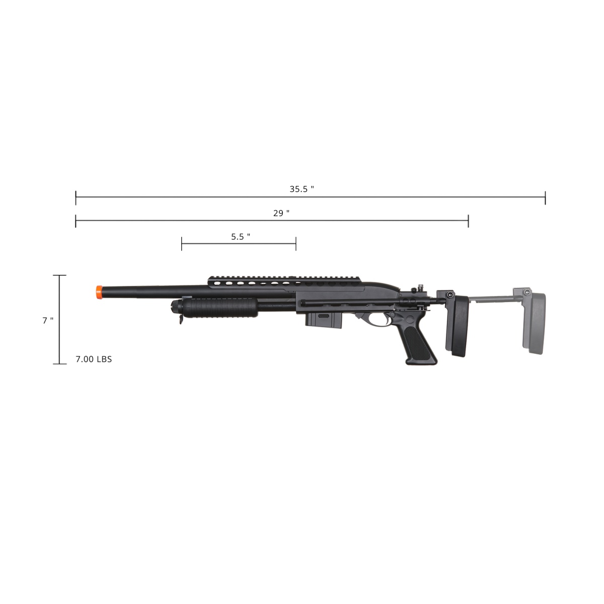 Atlas Custom Works Bravo Full Metal M870 Tactical Tac Shot Airsoft Shotgun (Color: Black)