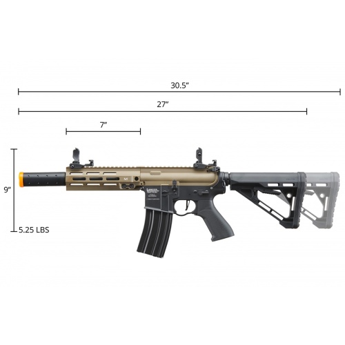 Lancer Tactical Blazer 7" M-LOK Proline Series M4 Airsoft Rifle with Delta Stock (Color: FDE Upper Receiver & Black Lower)
