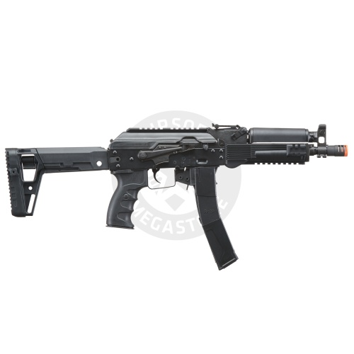 Introducing the LCT LPPK-20 SMG AEG Rifle, a powerhouse of a weapon designed to dominate the airsoft field. Crafted with a stamped steel receiver, this rifle replicates the look and feel of a real AK, exuding authenticity. Its heavyweight steel barrel, gas piston assembly, front sight, and muzzle add to its durability and realism. The lightweight handguard provides comfort while aiming down sights and features a 20mm picatinny rail underneath for easy grip attachment. The side-folding adjustable polymer stock offers versatility with multiple QD attachment points. The integrated picatinny rail on the dust cover allows for effortless optic mounting. With adjustable rear leaf-style iron sights and an ergonomic AK-12 style pistol grip, this rifle ensures accurate and comfortable shooting. The standard version 3 gearbox with 9mm bearings is easily upgradable with most AK aftermarket parts, giving you customization options. The easy-to-access hop-up system allows for quick adjustments. Plus, the included magazine coupler enables faster reloads during intense battles. Elevate your airsoft game with the LCT LPPK-20 SMG AEG Rifle, available exclusively at Airsoft Megastore.