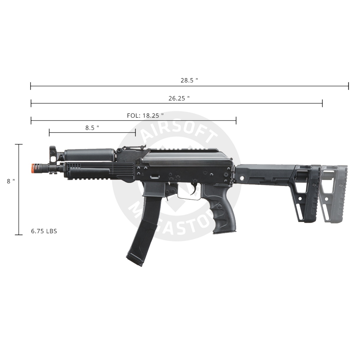 Rifle Length 18.25, 26.25 / 28.5 inches (Folded, Retracted / Extended)