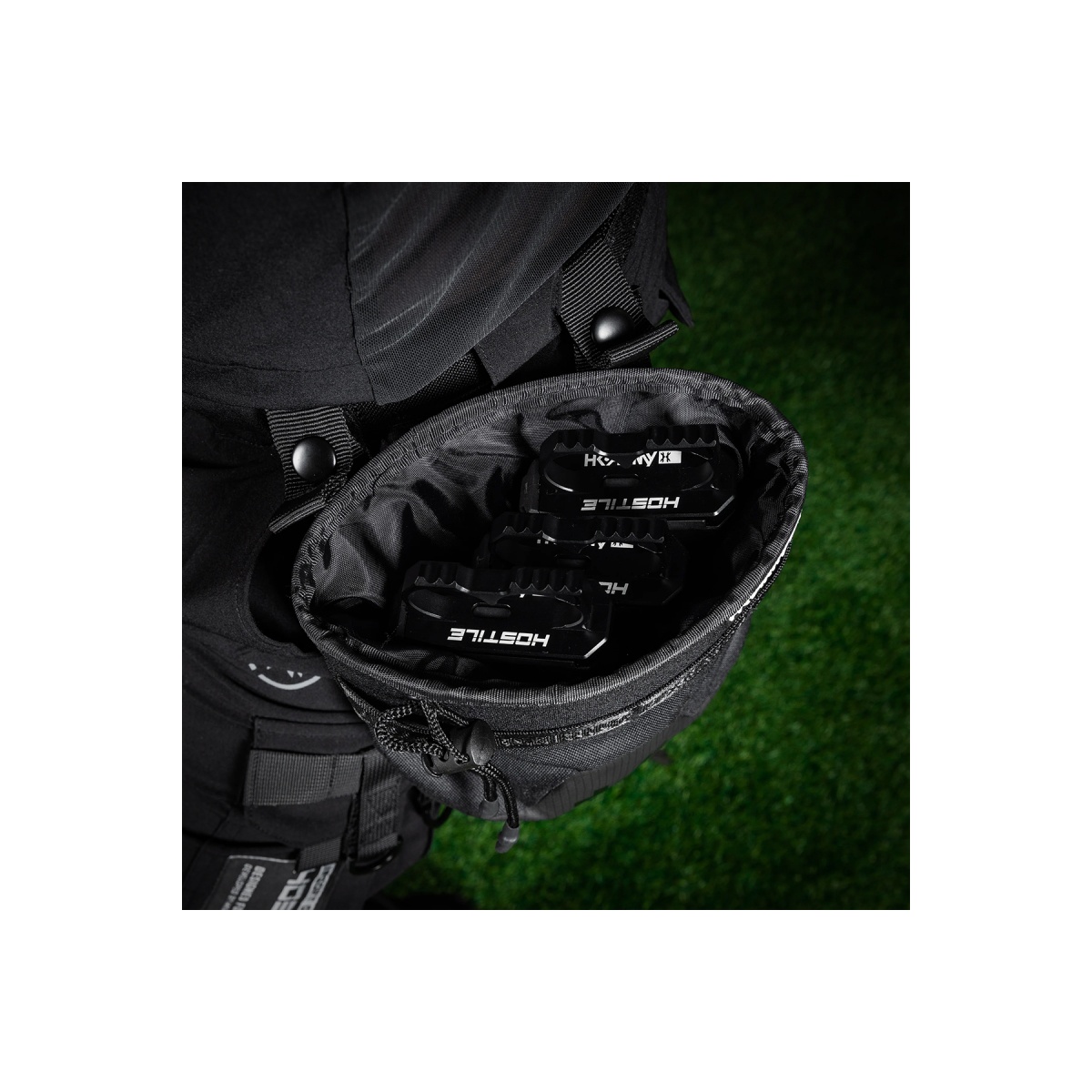 Features a nylon cinch drawcord closure at the top opening which helps prevent any magazines from falling out of the Dump pouch during game play