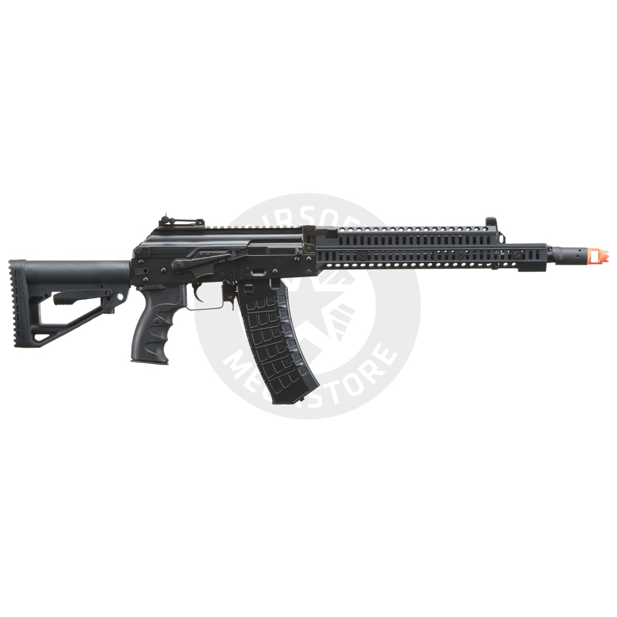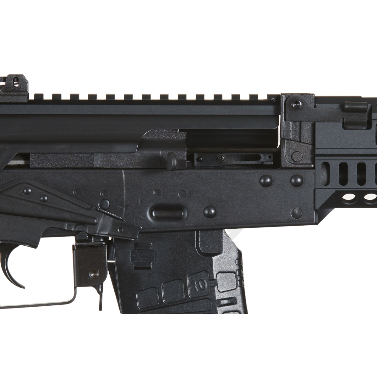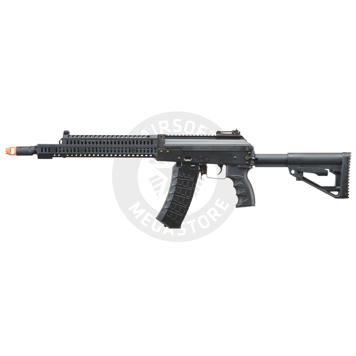 Introducing the LCT Airsoft ZK12 Tactical Assault EBB AEG with Z-Sport 13" Rail, the ultimate weapon for airsoft enthusiasts seeking unmatched performance and realism. Crafted with heavy-duty steel and lightweight fiber reinforced polymer, this rifle combines durability and maneuverability. Its LiPo battery-ready Version 3 gearbox ensures powerful and reliable operation, while the steel riveted receiver provides a realistic AK rifle feel. With both retractable and side folding stocks, you can adapt to any situation. The Zentico-style "Basis Direct Attachment System" rail offers secure accessory mounting. Enhanced grip and handling are guaranteed with the ergonomic textured motor/pistol grip. Experience authenticity with the AK safety selector lever and the heavyweight electric blowback bolt. Upgrade your airsoft game today with the LCT ZK12 from Airsoft Megastore.