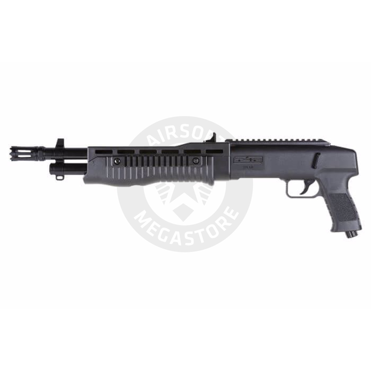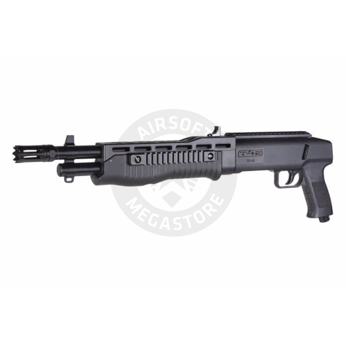 Introducing the Umarex T4E TB .68 Cal Paintball Marker, a powerhouse on the field that will take your paintball experience to the next level. This versatile marker can accept .68 caliber rubber, paint, inert dust, or pepper dust ammo, giving you the freedom to customize your gameplay. Powered by a single 12g CO2 capsule, it features a quick pierce CO2 piercing mechanism and a charging indicator for hassle-free operation. With its durable polymer grip and fore end, along with an aluminum smoothbore barrel, this marker is built to withstand intense battles. The internal magazine holds 16 rounds, and multiple Picatinny rails allow for easy attachment of accessories. With its fixed rear notch sight and front iron sight, you'll enjoy enhanced accuracy and precision. Elevate your game with the Umarex T4E TB .68 Cal Paintball Marker, available now at Airsoft Megastore.