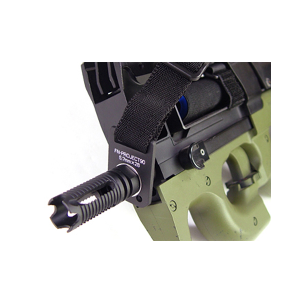 4mm steel plate is used to attach a sling to the front part of the P90