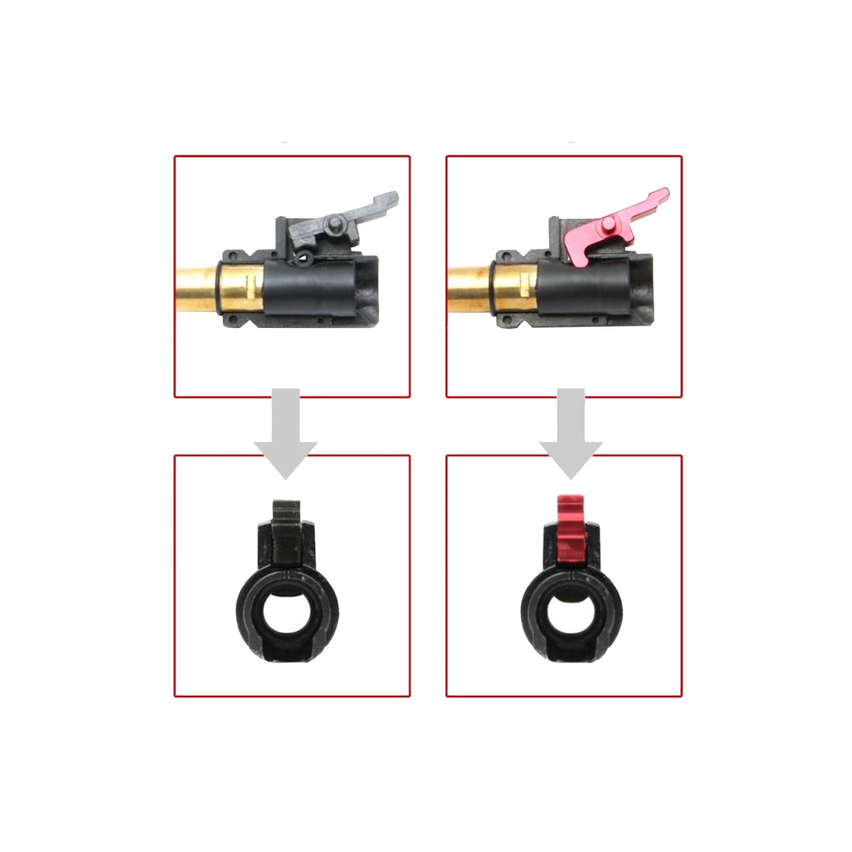• With the redesigned shape of the hop-up arm, you get a better and stronger hop compared to its original hop arm