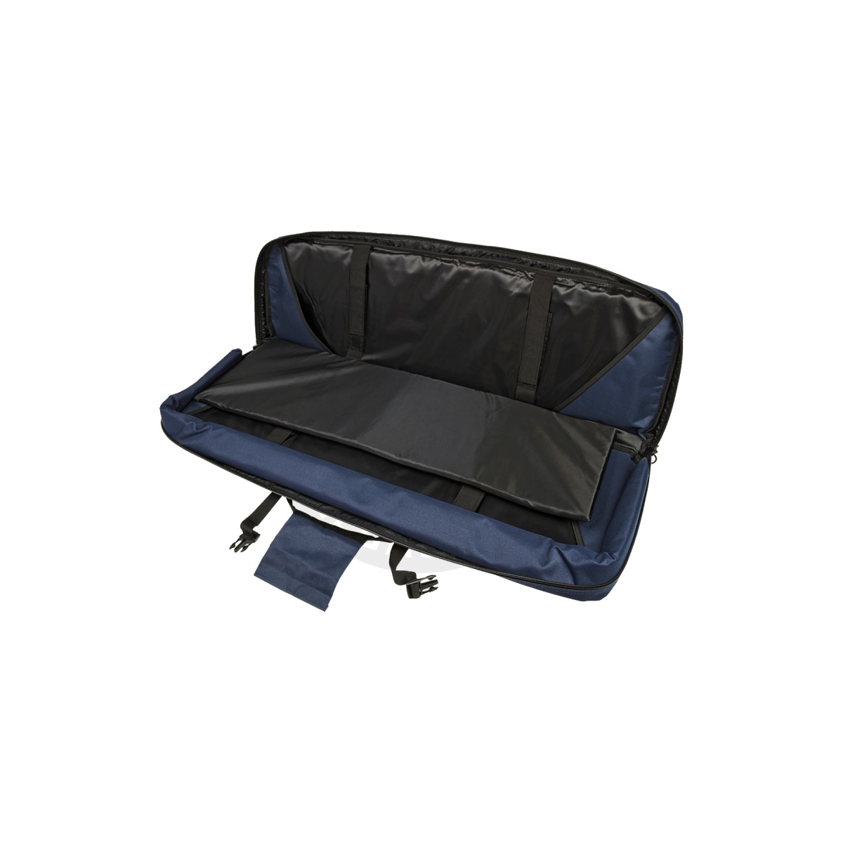 The primary compartment can accommodate 2 rifles 36 inches in overall length with a thick padded center divider and 4 hook and loop straps to properly secure each rifle