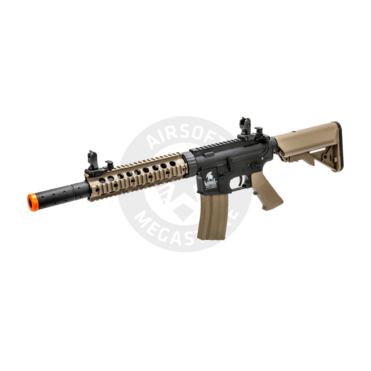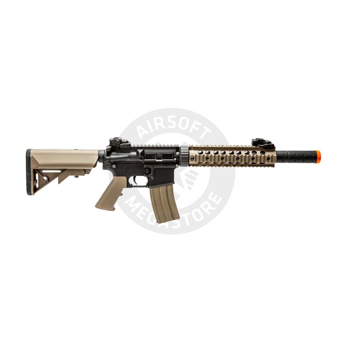 | Build | Full metal gearbox, magazine / Nylon polymer receivers, pistol grip, flip-up iron sights, stock, handguard, mock suppressor |