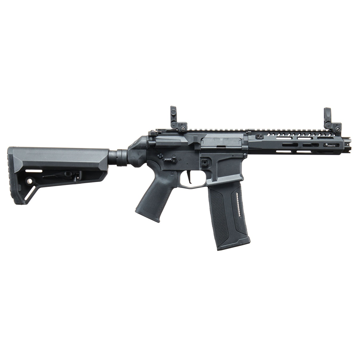 Internally, this custom AEG build is packed with performance upgrades designed to maximize reliability and trigger response. At the heart of the system is the Eshooter Kestrel V2 SE Electronic Trigger Unit, offering programmable firing modes including semi auto, burst, binary, full auto, and sniper delay. Wireless app configuration allows players to fine tune pre cocking, rate of fire, and trigger response while built in smart fuse protection safeguards the gearbox from electrical damage. The drivetrain is powered by SHS 13 to 1 steel gears, a Solink reinforced piston with 14 steel teeth, and a Maxx Model aluminum piston head for improved compression and consistent FPS. A Zion Arms brushless motor capable of 39,000 to 45,000 RPM ensures rapid trigger response and high speed cycling. The hop system is upgraded with a Maple Leaf MR Hop bucking and Lancer Tactical Kinetic TDC hop unit for improved range and stability with heavier BBs. Externally, the rifle features a BCM MCMR 7 inch M LOK rail, Battle Hawk outer barrel, and an Acetech Blaster tracer unit, creating a custom Lancer Tactical M4 airsoft rifle built for aggressive performance and standout tactical style.