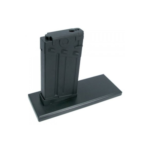 The King Arms Display Stand for DSR AEG is the perfect solution for showcasing or storing your high-end airsoft rifles with a professional touch. Designed specifically to support King Arms G3, FS3, and DSR series AEGs, this polymer stand ensures your rifle stays secure and upright whether you're displaying it in a showroom, organizing your gear wall, or simply storing it safely between games. The black finish blends seamlessly into any tactical or display environment, keeping the focus on your gear while adding a clean, professional look. Built from high-quality lightweight polymer, this display stand offers reliable durability without adding unnecessary weight. It's easy to assemble and disassemble, making it portable and perfect for events, tech benches, or home display cases. Whether you're an airsoft collector, player, or shop owner, the King Arms Display Stand provides an essential platform to support your rifle with stability and care. Its compatibility with long rifles and modern AEG platforms makes it a must-have accessory for anyone looking to keep their airsoft loadout clean, secure, and well-presented. Ideal for both function and presentation, this stand enhances the appearance of your replica while also offering dependable support.
