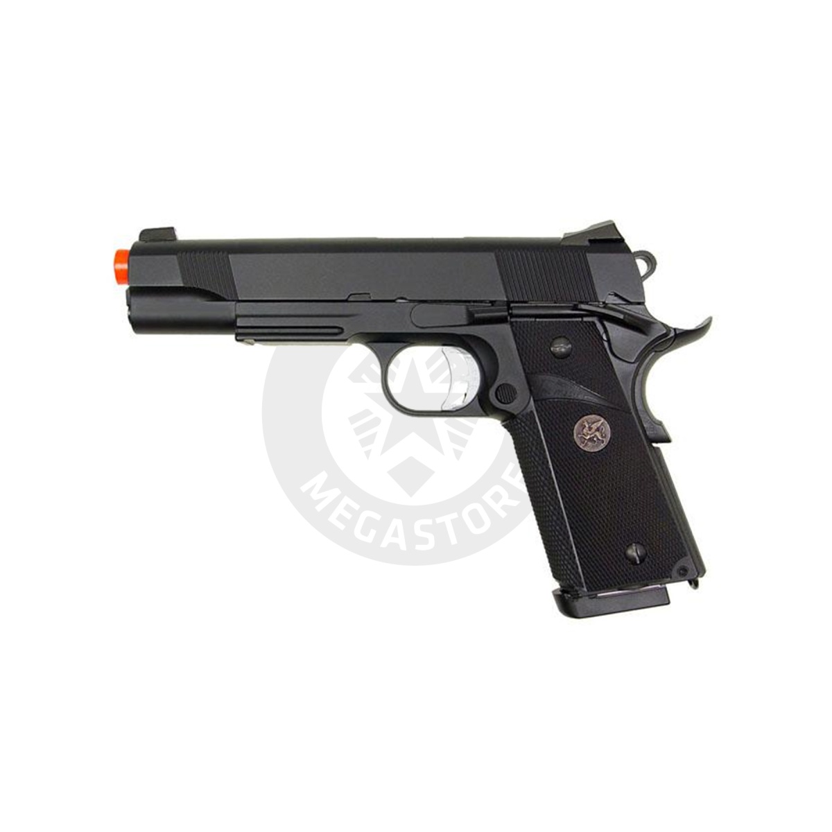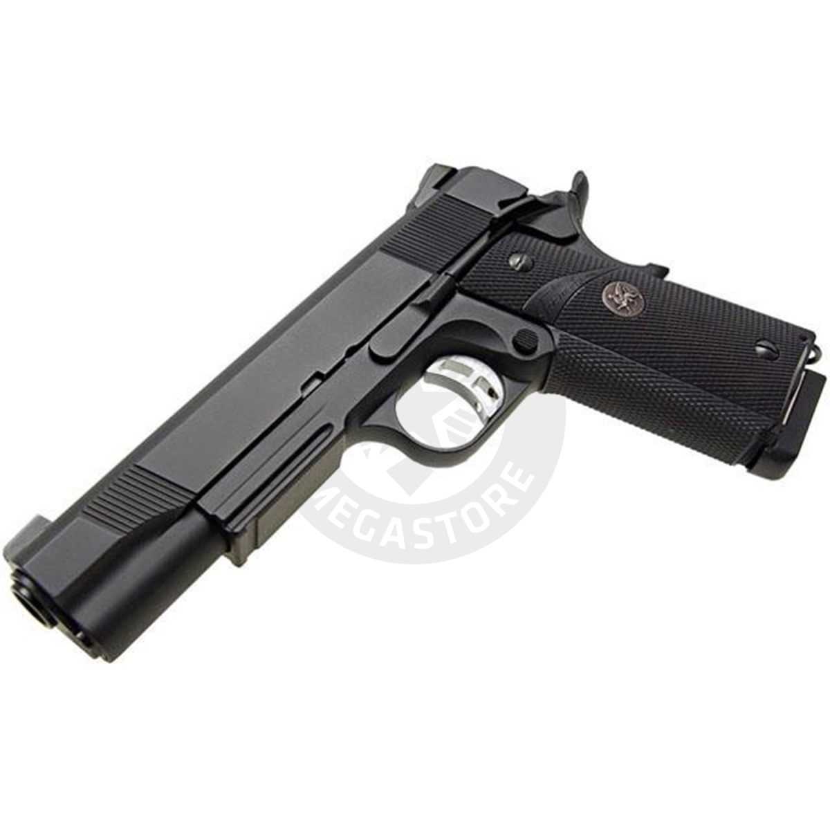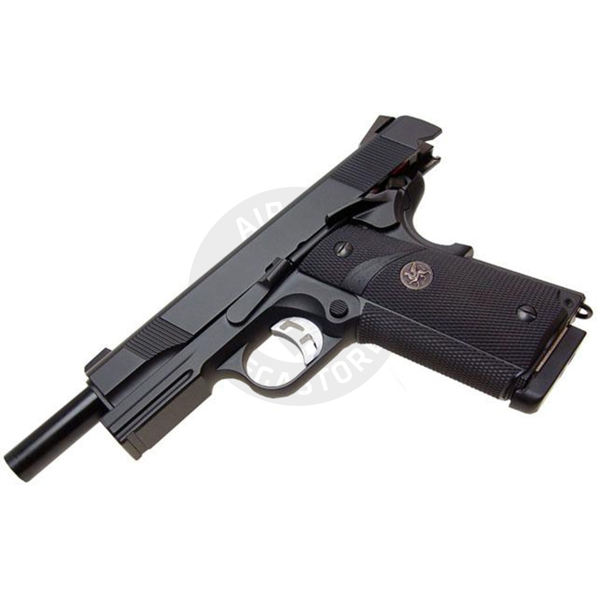 Experience precision and power with the KJW KP07 M1911 Full Metal Tokyo Marui System Gas Blowback pistol. Built for performance, it features a full metal construction, tactical railed frame, and adjustable hop-up system. With functional safety features like the on-frame safety and grip safety, along with a rubber tactical grip for enhanced control, it offers reliability and ease of use. Compatible with both green gas and CO2 magazines, it ensures versatility on the field. Made in Taiwan, this pistol boasts quality craftsmanship and a Gryphon emblem for added style. Dominate the battlefield with this top-tier airsoft sidearm from KJW.