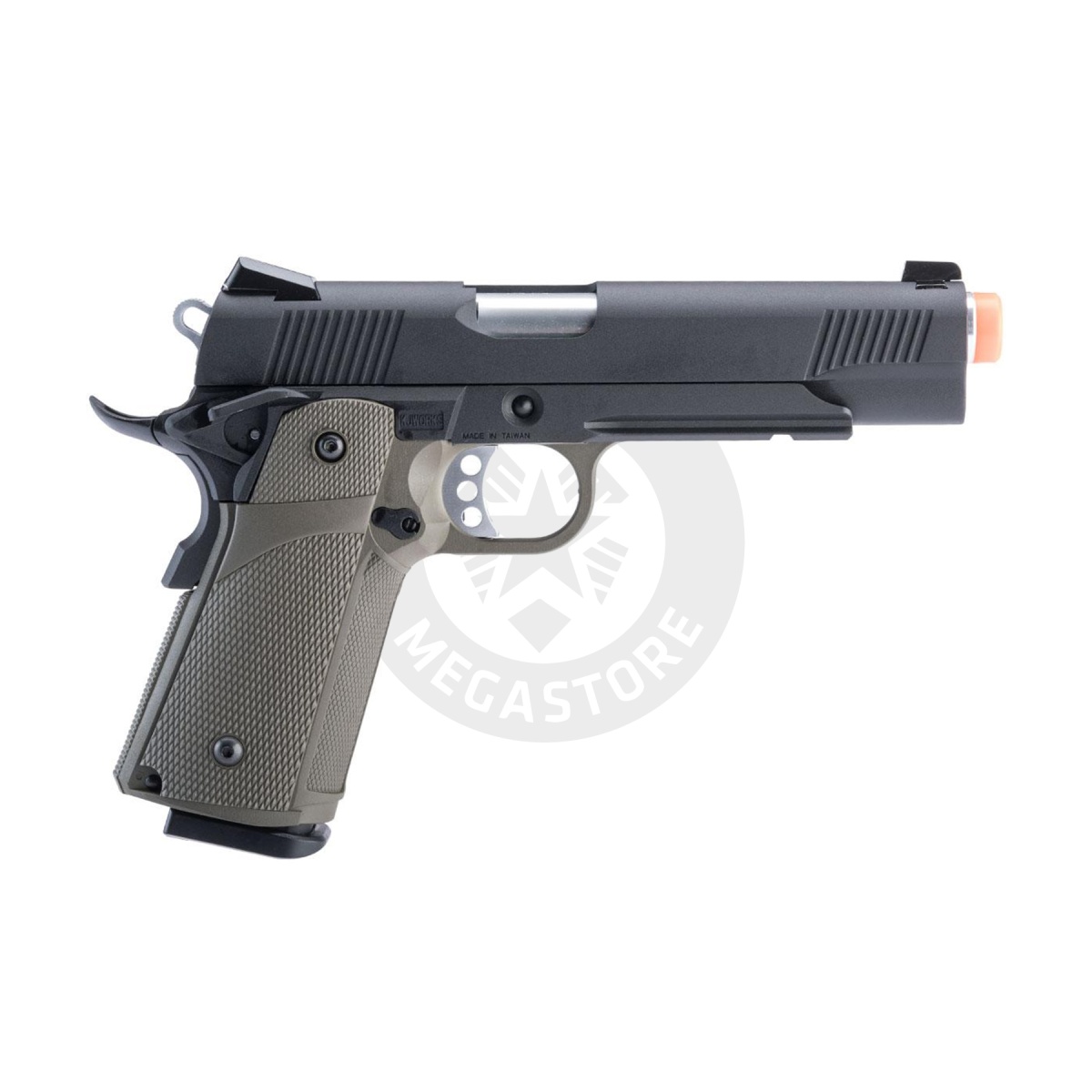 Experience unparalleled performance with the KJW Full Metal Custom 1911 Tactical HI-CAPA Gas/CO2 Blowback. Featuring a full metal slide, Tanio Koba grip, and reinforced internals, it delivers power, accuracy, and reliability. With a 30+1 round capacity and ambidextrous safety, it's perfect for Airsoft training and simulation. Dominate the field with its light trigger pull and accessory-ready railed frame. Whether using green gas, red gas, or CO2, this pistol excels in every scenario. Elevate your gameplay with this top-notch, versatile sidearm from KJW.
