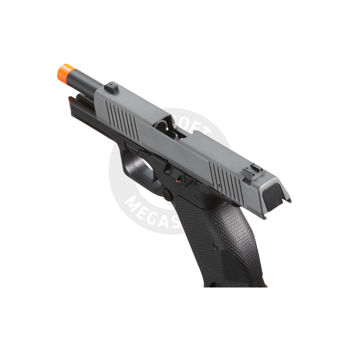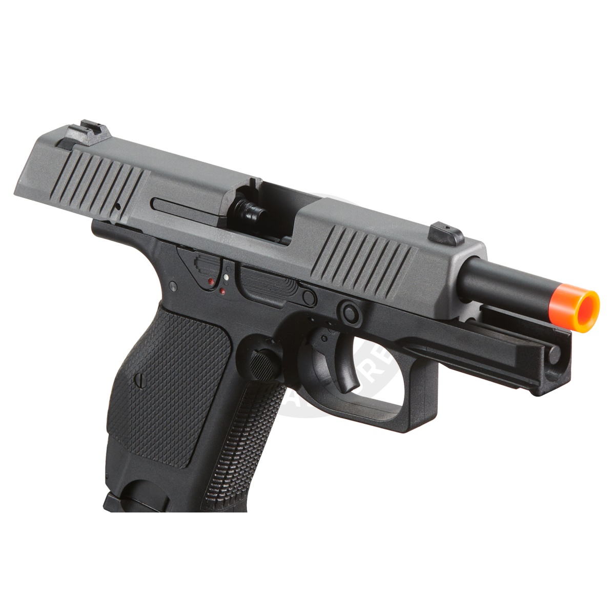 Introducing the Kizuna Works KW-15K Gas Blowback Pistol. Crafted with a high-quality aluminum alloy slide and a reinforced polymer frame, this airsoft pistol delivers exceptional performance. The ambidextrous magazine release and thumb safety cater to both right- and left-handed users. The picatinny rail allows for accessory attachment, while the ergonomic grip with rubberized texture ensures a comfortable hold. Featuring a steel hammer, sear, and valve knocker, this gas blowback pistol offers durability. With an internally threaded barrel for mock suppressors and tracer units, it provides customization options. Elevate your airsoft game with this top-tier pistol, exclusively available at Airsoft Megastore. Order now for a powerful and versatile sidearm that enhances your gameplay experience.