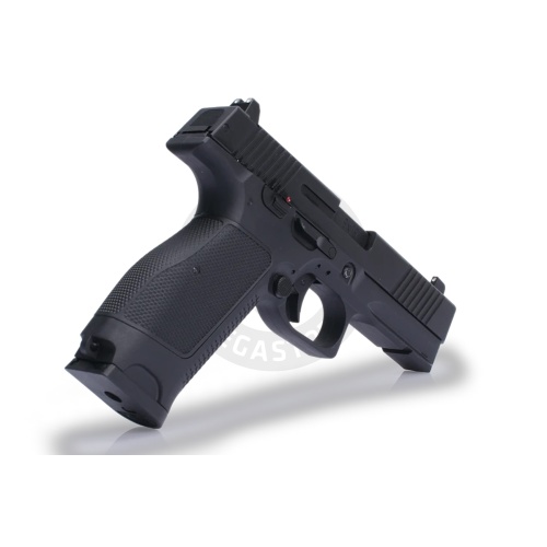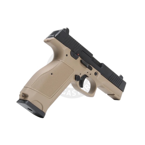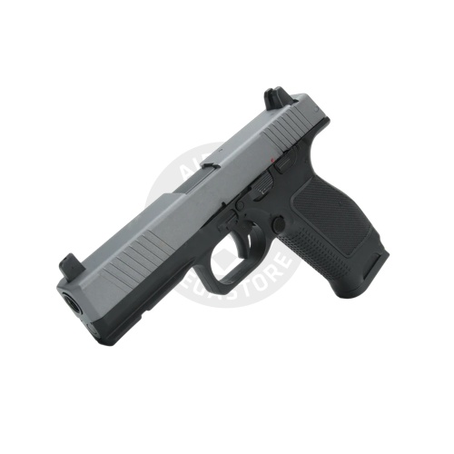 The Kizuna Works MKW Full Sized Gas Blowback Airsoft Pistol is a high-performance sidearm designed for serious airsoft players seeking precision, durability, and realism. With a solid FPS range of 290 to 310 and powered by green gas, this GBB pistol delivers crisp blowback action and consistent shooting performance straight out of the box. The MKW features an aluminum alloy slide paired with a fiber-reinforced polymer grip, giving it a perfect balance between strength and weight. Weighing approximately 700g and measuring 182mm in length, it offers a realistic feel and handling. Its 26-round MKW gas magazine ensures you stay in the action longer, while the 6.03mm inner barrel and 70.45mm length provide excellent accuracy in semi-auto fire mode.