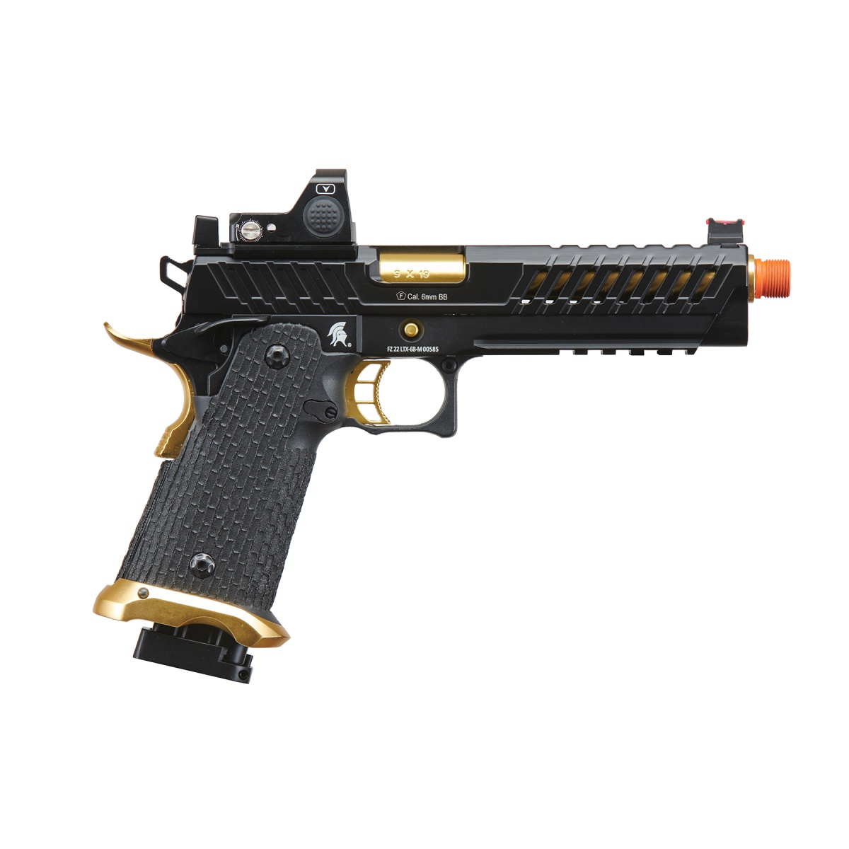 Lancer Tactical Knightshade Hi-Capa Gas Blowback Airsoft Pistol w/ Red Dot Sight (Color: Black & Gold)