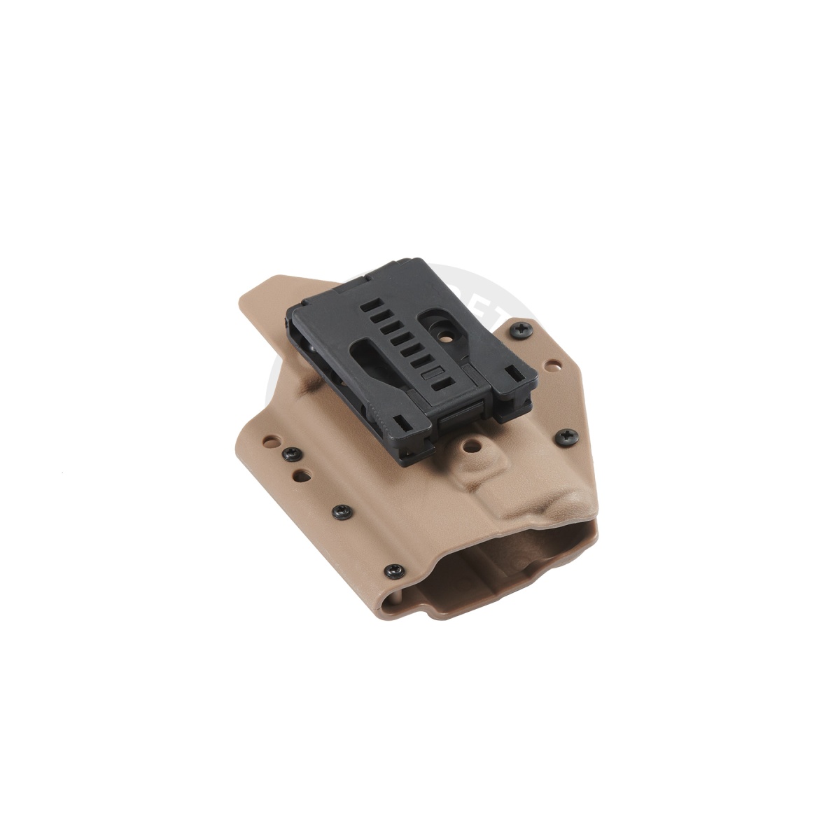 Enhance your tactical gear with the Lancer Tactical Light Bearing Hard Shell Holster for Glock 17 in tan. Constructed from durable hard-shell polymer, this holster ensures long-lasting use and protection for your pistol. Specifically designed for Glock 17 airsoft pistols, it features a lightweight construction that adds minimal weight. The mounting base is compatible with most belts less than 6cm in width, offering versatile carry options. Measuring 14 cm in height and weighing just 5.1 oz, this holster is both practical and reliable. Upgrade your setup with this high-quality Lancer Tactical holster, perfect for serious airsoft enthusiasts. Available now at Airsoft Megastore.