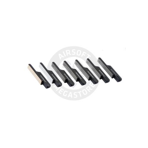Revolutionize your knife sharpening with the Sharp Rock Precision Adjustable Knife Sharpener at Airsoft Megastore! This tool boasts a 3-sided abrasive jig, ensuring faster, easier, and more precise manual sharpening. The sharpening angle adjusts seamlessly from 15 to 30 degrees in 1-degree increments. Effortlessly switch between coarse and fine diamond, along with a fine ceramic stone for versatile sharpening. The removable clamp guarantees safe and consistent knife securing. Crafted from neoprene, ceramic, plastic, steel, and acrylic, this sharpener promises durability. With a sleek black design, elevate your knife maintenance and ensure peak performance in every cut.