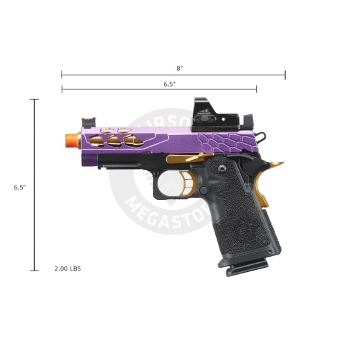 Lancer Tactical Stryk Hi-Capa 4.3 Gas Blowback Airsoft Pistol w/ Micro Red Dot Sight (Black, Purple, & Gold)