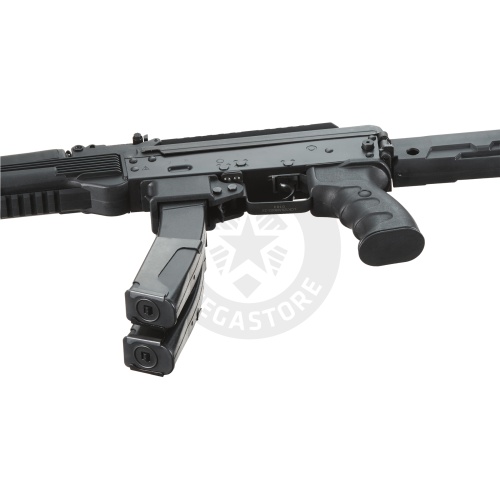 The LCT LPPK-20 SMG AEG Rifle with ASTER V2 SE Expert is a compact yet powerful airsoft platform designed for players who demand both realism and advanced performance. Built from stamped steel with polymer components, this submachine gun offers the rugged durability LCT is known for while maintaining a manageable weight of 6.75 lbs for fast-paced gameplay. Measuring just 18.25 inches when folded and up to 28.5 inches fully extended, the LPPK-20 is ideal for close-quarters combat while still capable of performing in outdoor scenarios. Internally, it is equipped with a full metal Version 3 gearbox, short-type motor, and 9mm bearings, providing smooth and reliable cycling. The integrated ASTER V2 SE Expert mosfet enhances trigger response, protects the gearbox, and offers precise electronic control to give players a serious competitive edge. Firing at 380 to 400 FPS with .20g BBs, this AEG delivers the velocity and accuracy needed to stay dominant in any airsoft environment. Externally, the LPPK-20 SMG is loaded with tactical features to maximize usability and customization. A durable handguard with a 20mm Picatinny rail underneath allows for mounting vertical grips, while the integrated dust cover rail provides ample space for optics. Adjustable rear leaf sights keep the traditional AK-inspired design intact, while the ergonomic AK-12 style pistol grip offers comfort and control during extended matches. The side-folding polymer stock is adjustable and equipped with multiple QD sling attachment points for versatile carrying setups. A steel barrel, gas piston assembly, front sight, and muzzle contribute to its realistic look and heavy-duty build. With a 50-round magazine, magazine coupler for faster reloads, and an adjustable hop-up system, the LPPK-20 balances authenticity with modern performance. For players looking for a high-quality SMG AEG with cutting-edge electronics and rugged construction, the LCT LPPK-20 stands out as a premier choice.