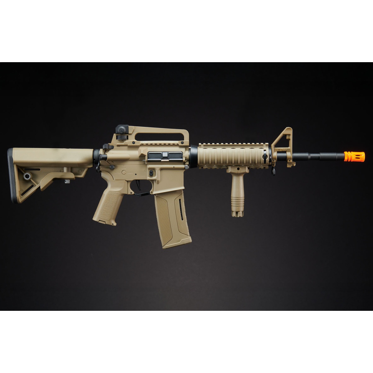The Lancer Tactical Gen 3 M4 SopMod Airsoft AEG Rifle in dark earth delivers a perfect combination of durability, realism, and cutting-edge performance for modern airsoft players. Constructed with a rugged nylon polymer frame and reinforced metal barrel assembly, this rifle is both lightweight and battle-ready for any field or CQB environment. The Gen 3 series represents a major leap forward for Lancer Tactical, integrating many of the same high-end features found in their Proline series. At its core is a full metal Version 2 gearbox with an 18:1 steel gear set, steel-tooth polycarbonate piston, and a 19,000 RPM high torque motor-all working together for reliable power and consistency. Out of the box, the rifle fires at 380 to 400 FPS with the pre-installed high FPS spring, and includes a low FPS spring for indoor or CQB use. Lancers quick-change spring system makes swapping between power levels fast and easy without disassembling the gearbox. Internally, the rifle is equipped with the advanced Zion Arms fully programmable electronic trigger unit, allowing customization of burst modes and trigger response for enhanced control and efficiency. The Deans connector provides improved electrical performance and more room for higher capacity batteries. Externally, the M4 SopMod features a classic quad rail Picatinny handguard and full-length top rail for optics, lights, or lasers, along with a removable M4-style carrying handle that reveals even more accessory space. The 6.03mm tightbore barrel enhances accuracy, while the adjustable rotary hop-up ensures consistent range. Finished in a realistic dark earth color, this rifle also includes flip-up iron sights, a textured pistol grip, and a retractable stock for comfort in any engagement. The Lancer Tactical Gen 3 M4 SopMod is an excellent choice for players seeking precision, versatility, and next-generation reliability straight out of the box.