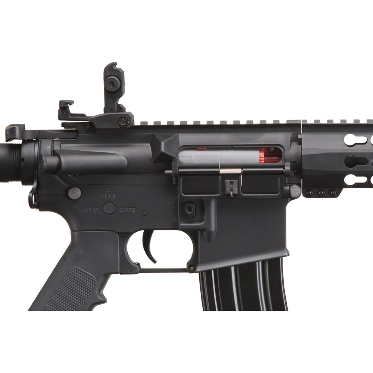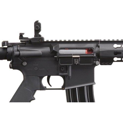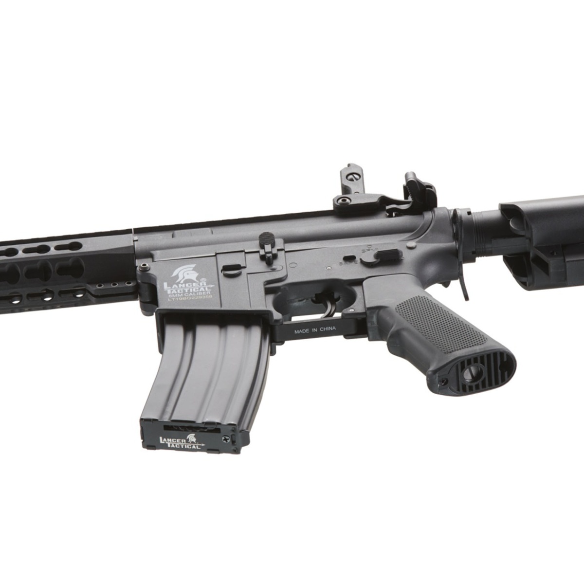 The Lancer Tactical Gen 2 10 inch Keymod M4 Carbine Airsoft AEG Rifle is a reliable electric automatic platform built for players who want consistent performance in a lightweight and durable package. Featuring a rugged nylon polymer frame paired with a metal barrel assembly, this airsoft rifle balances strength and maneuverability for field or CQB play. Shooting at approximately 370 to 395 FPS with 0.20g BBs, it delivers solid range and accuracy while remaining field legal at most outdoor and indoor fields. The adjustable hop up and polished 6.03mm tightbore inner barrel help maintain stable shot placement, making it an effective choice for both new and experienced airsoft players. A rear wired configuration supports a 9.6v NiMH nunchuck battery via small Tamiya connector, allowing easy battery access while keeping the setup clean and streamlined. At the core of this airsoft gun is a full metal Version 2 gearbox equipped with a quick change spring system, allowing players to easily tune FPS to meet changing field requirements. Ultra smooth 8mm ball bearings, an 18 to 1 steel gear ratio, and a 19k high torque motor provide dependable cycling and long term durability during extended play. The 10 inch KeyMod handguard offers ample mounting space for KeyMod compatible accessories, while the full length 20mm Picatinny top rail supports optics, lights, lasers, and PEQ style accessories. Flip up front and rear iron sights deploy quickly for fast target acquisition, and the multi position retractable stock ensures comfort for players of different sizes. With a 300 round high cap magazine and proven Lancer Tactical Gen 2 internals, this airsoft AEG rifle is a strong choice for players seeking performance, adaptability, and value in a modern M4 style airsoft platform.