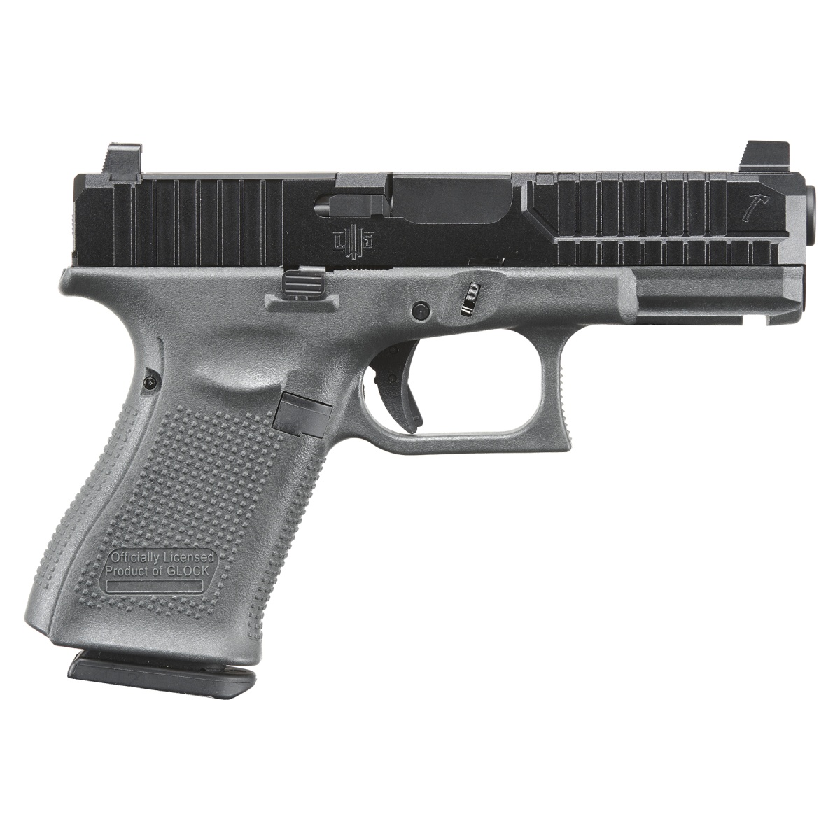 The Umarex Licensed Gen 5 Glock 19 w/ LWS x VEIL Tomahawk Slide Kit in Black and Tungsten Grey delivers a refined blend of realism, performance, and aggressive modern styling for serious airsoft players. Built on a rugged injection molded polymer frame and paired with a full CNC aluminum Tomahawk slide, this gas blowback airsoft pistol offers a solid, realistic feel with enhanced durability. Fully licensed by Glock with authentic rollmarks, it maintains true to life handling through its functional trigger safety and traditional Glock sight profile. The slip resistant grip texturing with front and backstrap checkering ensures confident control, while the integrated accessory rail allows for easy attachment of lights or lasers, making it ideal for both CQB environments and outdoor field use.