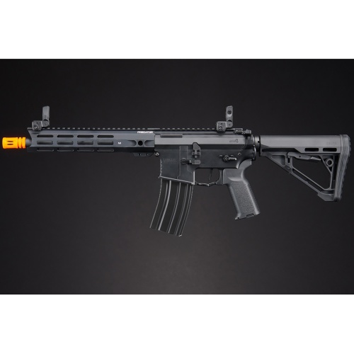 Introducing the Lancer Tactical Gen 4 Predator Delta with 10" Rail and Faxon Sight in sleek Black. Unleash precision with the pre-installed GATE ASTER MOSFET, ambidextrous controls, and functioning bolt catch. Its metal alloy receiver features a weather-resistant matte finish, paired with a CNC-machined 5" M-LOK handguard. Boasting a Faxon Flip-Up sight, quick deploy release, and high-speed 140 rd Mid-Cap magazine, this rifle is tactical excellence. Experience versatility with the quick-change spring system, Deans connector, and PDW stock with rubberized buttpad. Elevate your airsoft game with Lancer Tactical's Gen 4 gearbox technology. Get the Predator Delta at Airsoft Megastore – your path to supremacy.
