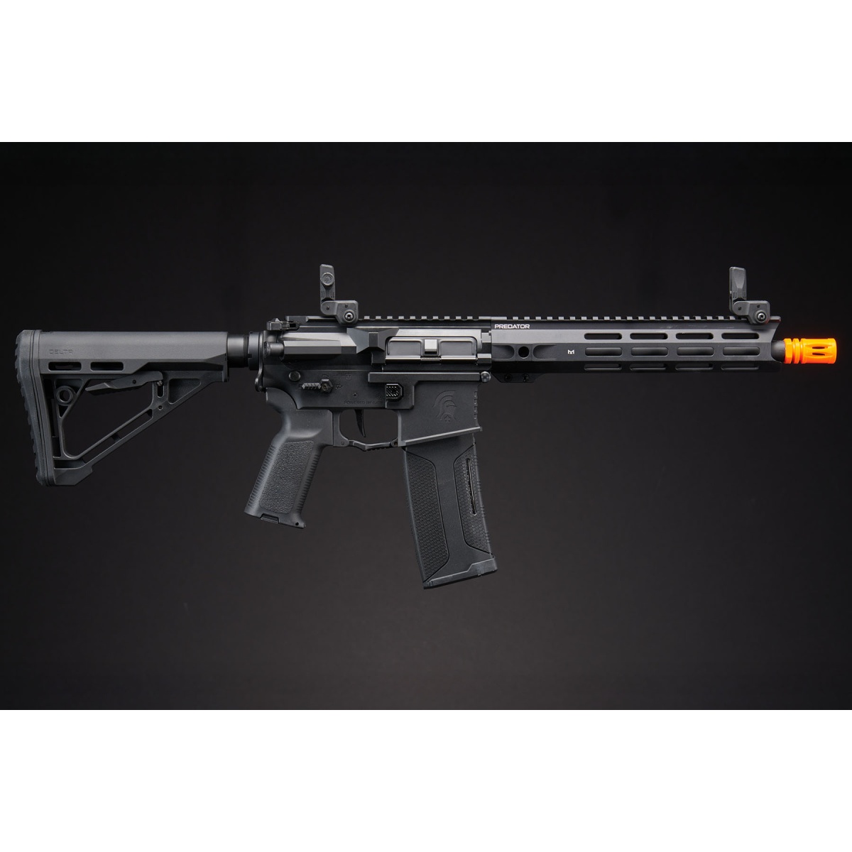 Introducing the Lancer Tactical Gen 4 Predator SBR with 10" Rail and Faxon Sight in sleek Black. Unleash precision with the pre-installed GATE ASTER MOSFET, ambidextrous controls, and functioning bolt catch. Its metal alloy receiver features a weather-resistant matte finish, paired with a CNC-machined 5" M-LOK handguard. Boasting a Faxon Flip-Up sight, quick deploy release, and high-speed 140 rd Mid-Cap magazine, this rifle is tactical excellence. Experience versatility with the quick-change spring system, Deans connector, and PDW stock with rubberized buttpad. Elevate your airsoft game with Lancer Tactical's Gen 4 gearbox technology. Get the Predator SBR at Airsoft Megastore – your path to supremacy.