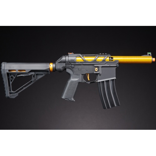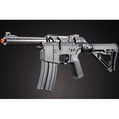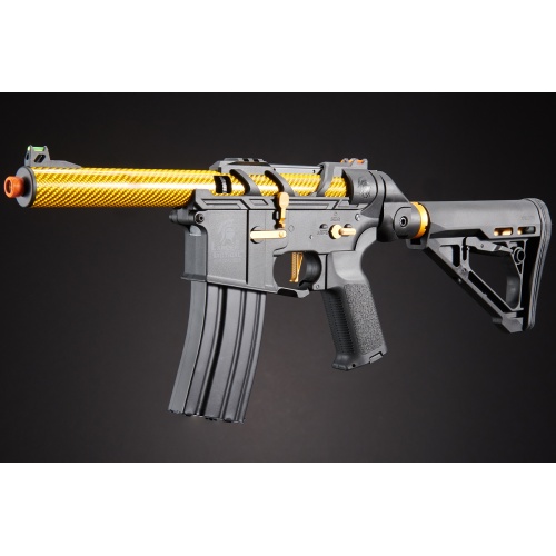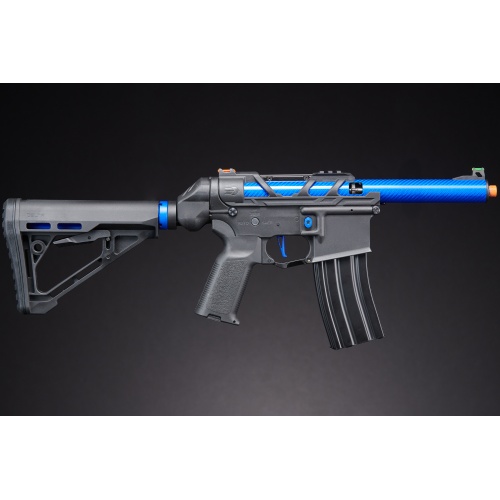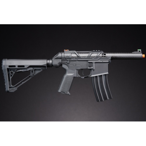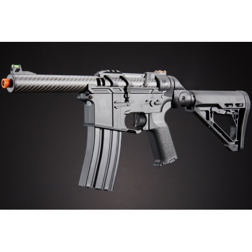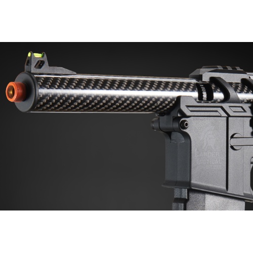 Introducing the Lancer Tactical AirTac Customs Gen 3 - (Black), a cutting-edge AEG that redefines airsoft warfare. Crafted with a high-strength full polymer construction, this lightweight yet durable masterpiece boasts a Carbon Fiber Inner/Outer Barrel and Polymer Lower for unparalleled performance. The Gen 3 features a Zion Arms Nebula Programmable Mosfet and Lancer's fast trigger, delivering a relentless barrage of BBs with programmable burst modes.
