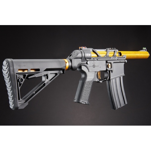 Equipped with a Deans Connector for space-efficient high-capacity batteries, the Gen 3's quick-change spring system allows on-the-fly adjustments, offering versatility on the battlefield. The reinforced metal Gen-2 gearbox ensures reliability, while the 6.03mm tightbore inner barrel enhances accuracy.