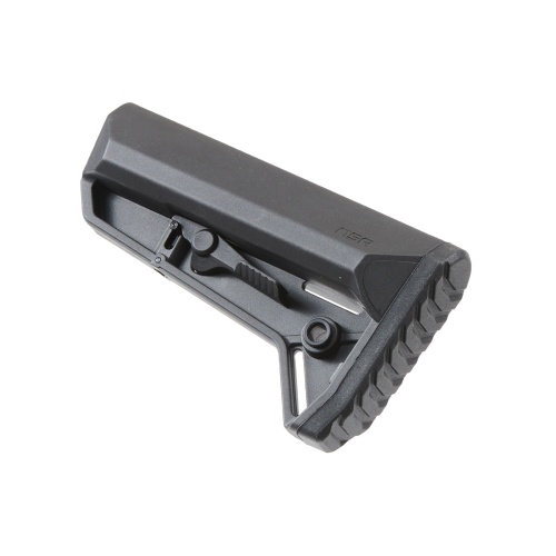The Lancer Tactical Adjustable NSR AEG Rifle Stock in black is the ideal upgrade for players seeking improved ergonomics, durability, and enhanced battery storage in one streamlined package. Designed for compatibility with standard M4 style buffer tubes, this stock is a perfect fit for a wide range of AEG platforms. Built from reinforced polymer, it delivers rugged field performance while keeping your rifle lightweight and maneuverable. The rubberized buttpad ensures stable shouldering and comfort during extended skirmishes while its low profile design prevents snagging in tight spaces or gear setups. One of the standout features of the NSR stock is its enlarged internal battery compartment, optimized to fit larger or higher capacity rear wired LiPo batteries with ease, making it an excellent choice for players running high demand internal builds. The multiposition adjustable length allows for fast on the fly customization of the rifle's length of pull, offering better control and fit across various play styles and gear loadouts. The textured adjustment lever offers a secure toolless locking mechanism while integrated sling mount points on both sides provide flexibility for one point or two point sling setups. Whether you're navigating tight CQB environments or pushing hard in outdoor MilSim games, the Lancer Tactical NSR Stock enhances your AEG's performance and adaptability. Available now, this stock is a tactical must have for serious airsoft operators.