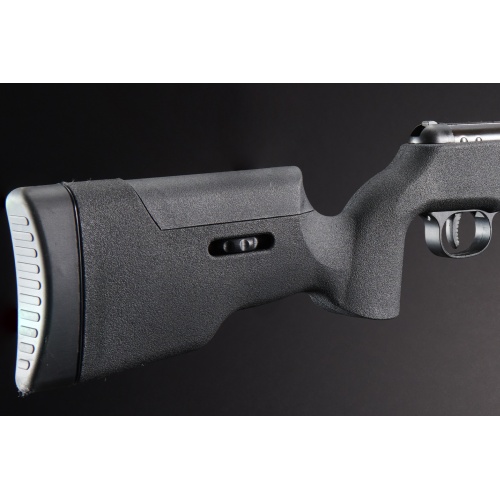 The SnowPeak SR1250S Air Gun is a powerhouse in the world of break barrel rifles, offering a perfect blend of precision, control, and rugged design. Available in 5.5mm calibers, this rifle delivers outstanding muzzle velocity up to 800 fps respectively, making it an excellent choice for target shooting or small game hunting. Engineered for high shooting accuracy and consistent performance, the SR1250S features a 485mm precision barrel and operates in manual and single-shot fire modes. A reduced cocking force makes the rifle easier to handle, while its sniper-style PP stock with an integrated bipod ensures stability and control in every shot. Comfort and safety are top priorities with the SR1250S. It features an adjustable cheek piece for a customized aiming position and a two-stage adjustable trigger pull ranging from 4 to 8.5 Lbf for optimal responsiveness. An automatic and double safety mechanism with adjustable ON/OFF resistance (1-6 Lbf) adds an extra layer of shooter security. Built to last, the air gun has a heavy-duty construction with a balanced, full-size frame measuring 1265 x 160 x 60 mm and a solid weight of 4.4 kg. Its tactical black finish adds to the rifle's commanding presence. Designed for high usage and long-term durability, the SnowPeak SR1250S is available now and ready to deliver unmatched power and accuracy for airgun enthusiasts who want reliable performance in a well-balanced, sniper-style package.