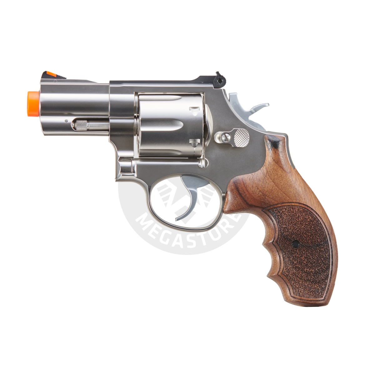 Introducing the Ares 2" Revolver Snub Nose in captivating Steel/Wood – a masterpiece of airsoft craftsmanship. Immerse yourself in its full metal, electroplated stainless steel finish, featuring a walnut wooden grip for an authentic touch. This CO2-powered beauty operates in both single and double action, with a fully functional design and six authentic .357 dummy bullet shells. Experience smooth operation and top-notch quality with Ares' attention to detail. Elevate your collection with this snub nose revolver's stunning aesthetics and precision engineering. Get the Ares 3 1/2" at Airsoft Megastore for a timeless addition to your arsenal.