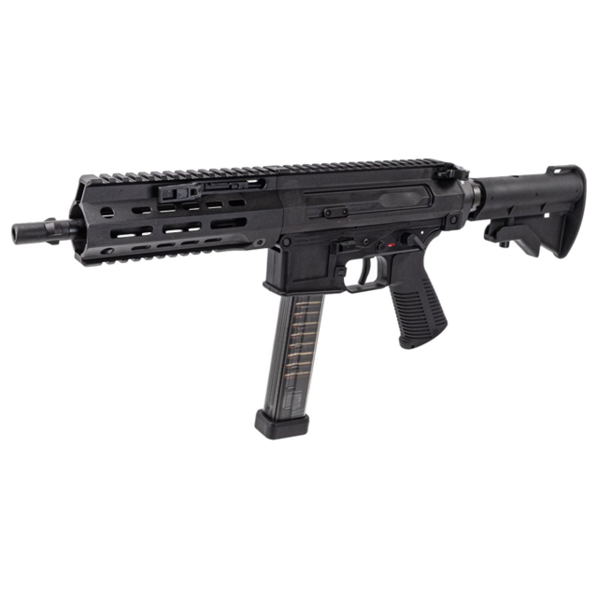 Boasting a 45-round magazine and a lightweight yet durable build, the 5PC-9 guarantees you're always prepared for action. Weighing 1960g with the magazine, it delivers stability while maintaining agility. With a compact length of 410mm, extendable to 590mm, it offers the flexibility required for both close-range and mid-range combat