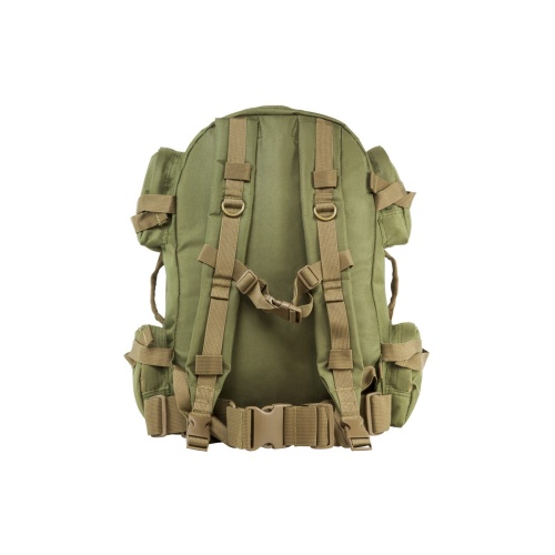 The NcStar Vism Tactical Combat Backpack, available at Airsoft Megastore, is the ideal choice for carrying a day's supply of essential gear. With multiple compartments and MOLLE webbing, it offers extensive customization options. The backpack features heavy-duty zippers, multiple carry handles, and is hydration bladder compatible with drink tube routing. Adjustable compression, sternum, and waist straps ensure a secure fit. Crafted from durable PVC, it is chemical and water-resistant, perfect for tough conditions. The main compartment measures 18” H x 12” W x 6” D, with additional side and top compartments for organized storage. Enhance your tactical setup with this versatile and robust backpack.