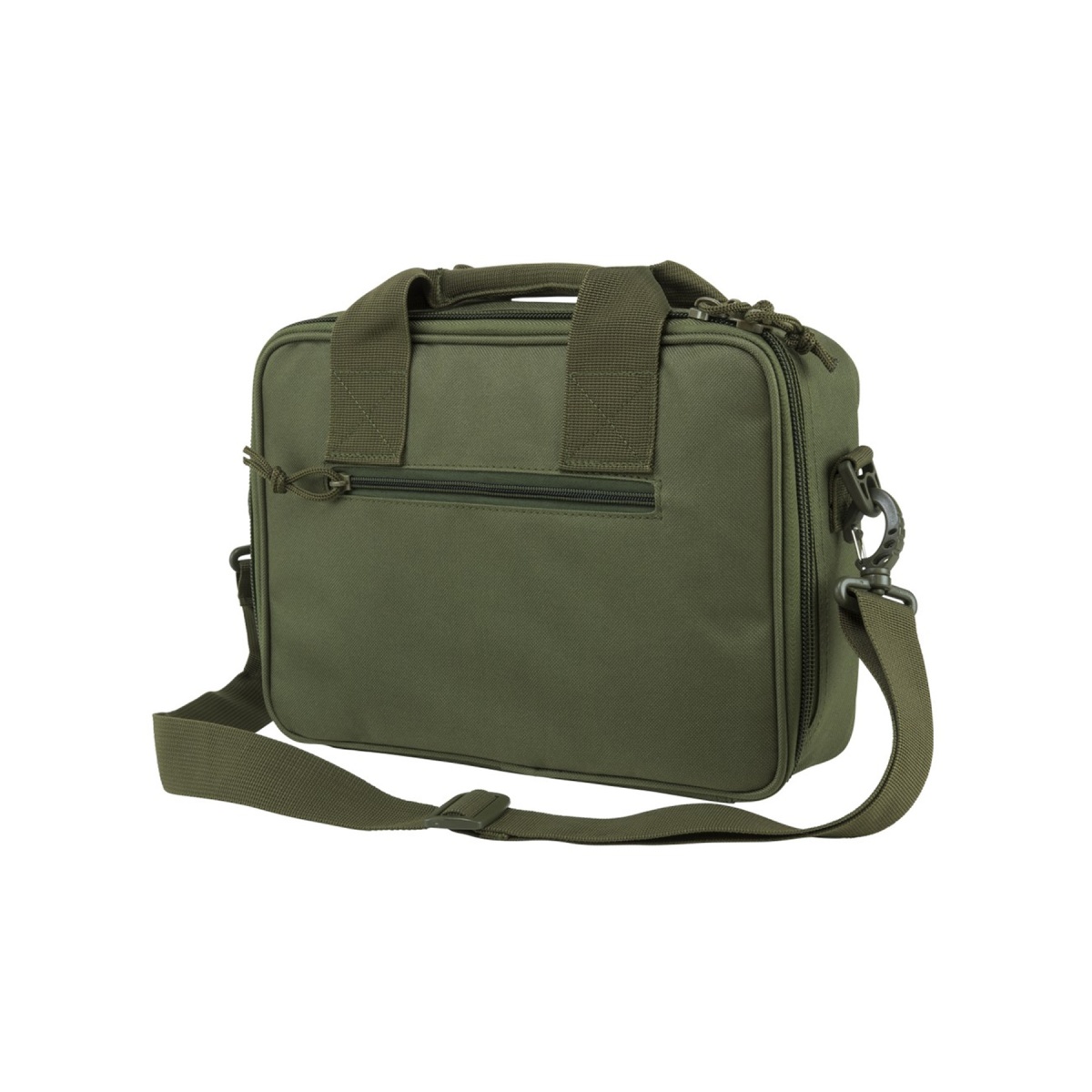 • Heavy Duty padded carry handles and an adjustable Shoulder Strap with quick connects are included. There is also an external zippered compartment to hold paperwork, your car keys, etc. On the back side there is a 5" X 3" loop fastener patch to attach a name tape or moral patches.