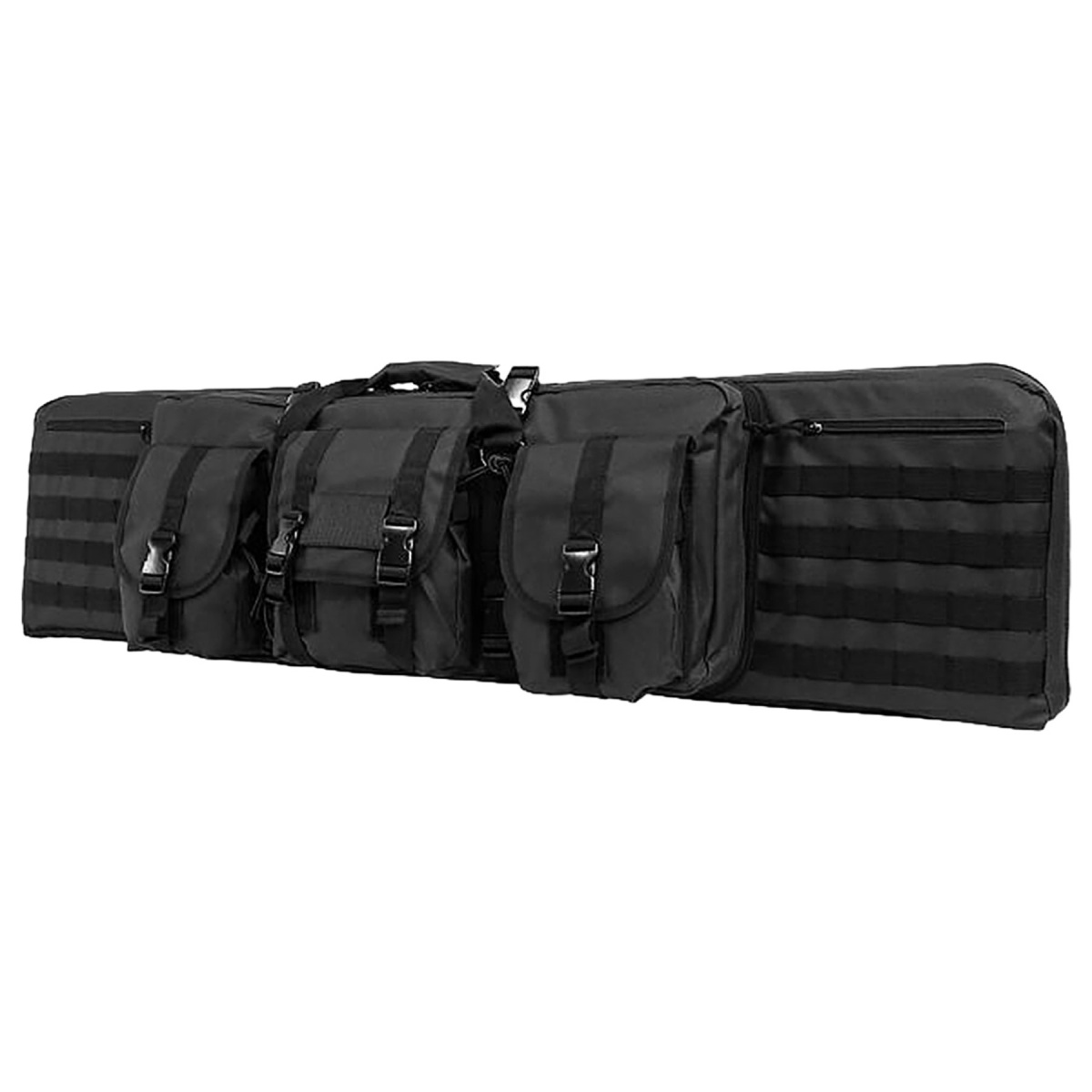 Built for rugged performance, this case is constructed from heavy-duty PVC material that is both water and chemical resistant, making it ideal for demanding environments. Large lockable zippers protect the main compartment, while heavy-duty padded carry handles and removable adjustable backpack straps offer multiple carry options for comfort and convenience. The reinforced metal D-rings ensure secure strap attachment, and the overall design emphasizes durability and ease of transport. Whether you are heading to the range, a competition, or on a hunting trip, the VISM by NcSTAR 46 Inch Double Carbine Case delivers the capacity, protection, and functionality serious shooters demand. With its combination of robust materials, thoughtful storage layout, and tactical versatility, it is an excellent choice for anyone seeking a reliable firearm transport solution that can handle both rifles and essential accessories in one secure, organized package.