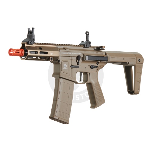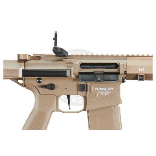 Introducing the Poseidon Punisher QRF AEGR Rifle and advanced Medusa App Based Programmable Mosfet. – a compact powerhouse for airsoft dominance. Crafted with a lightweight nylon and fiber body, this tan beauty hosts an 8mm Gearbox V2 for ultimate impact resistance. Complemented by ambidextrous controls, a quick spring release, and an intuitive vertical trigger. The batwing charging handle offers rapid control, while the ergonomic, non-slip grip enhances comfort. Paired with a 220-round AEG M4 Midcap Magazine, Poseidon's Punisher QRF redefines agility and precision. Elevate your game, seize victory, and stand out on the field.