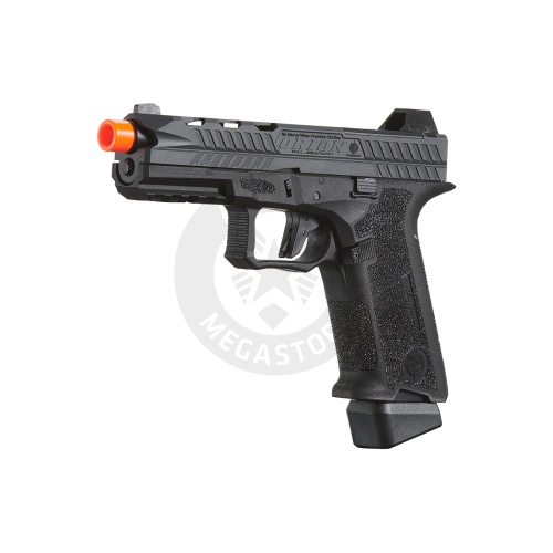 Introducing the Poseidon Orion Combat GBB Pistol No. 2, featuring the ergonomic Shark scales for a comfortable grip and enhanced shooting stability. With a robust polymer slide, this pistol boasts the Poseidon system, surpassing 50000 test rounds without nozzle issues. The patent-built semi/full auto selector, compatibility with RMR, and compact design make it a versatile choice. Standard gear includes an aluminum muzzle protector and steel muzzle adapter. Embrace Poseidon's innovation and precision for a reliable, high-performance airsoft pistol. Elevate your gameplay with this top-tier, adjustable hop-up sidearm, suitable for both semi and fully automatic action. Upgrade today for a powerful and compact airsoft experience.