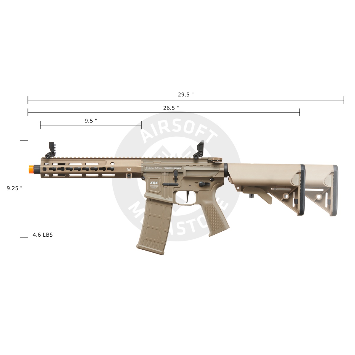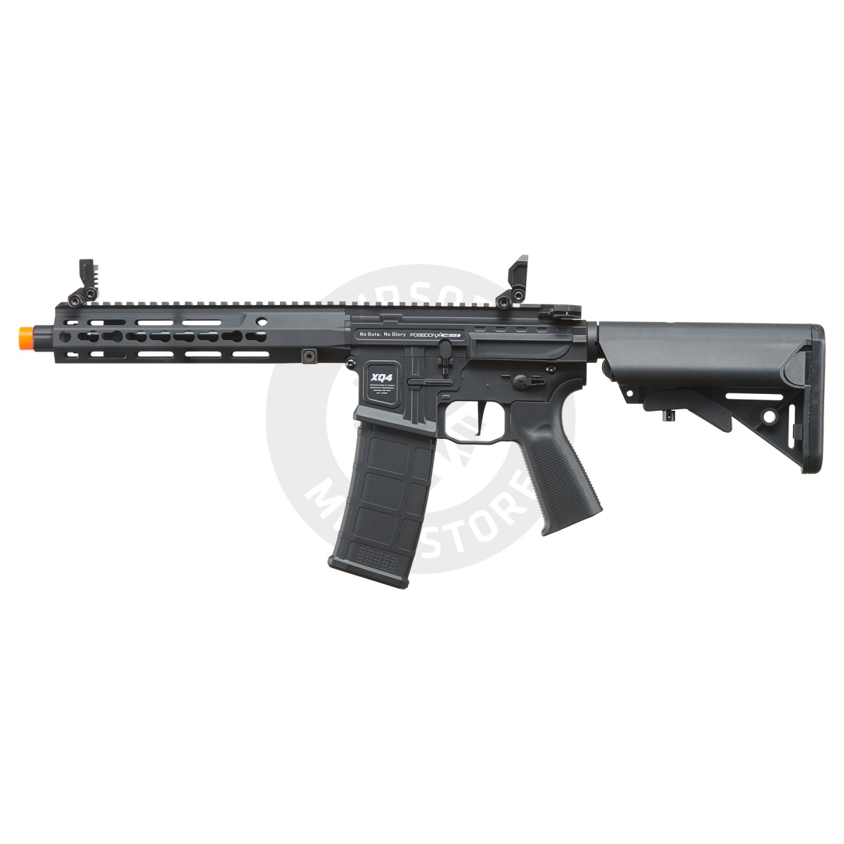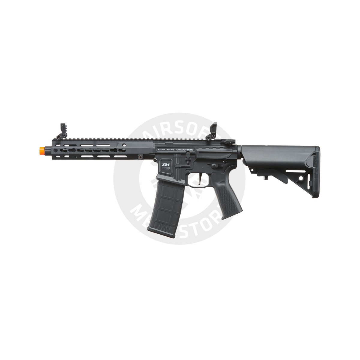 Introducing the Poseidon XQ4 9" PDW Rifle with Crane Stock – an airsoft marvel for tactical enthusiasts. Crafted from impact-resistant nylon and fiber, this black beauty boasts ambidextrous controls, quick spring release, and a batwing charging handle for rapid precision. The ergonomic grip ensures comfort during intense gameplay. Featuring a crane-style stock, and 8mm Gearbox V2, it delivers optimal performance. Paired with a 220-round AEG M4 Midcap Magazine, Poseidon's XQ4 9" PDW guarantees a dominating edge on the field. Elevate your game, seize victory, and stand out with Poseidon's cutting-edge design.