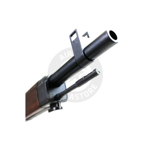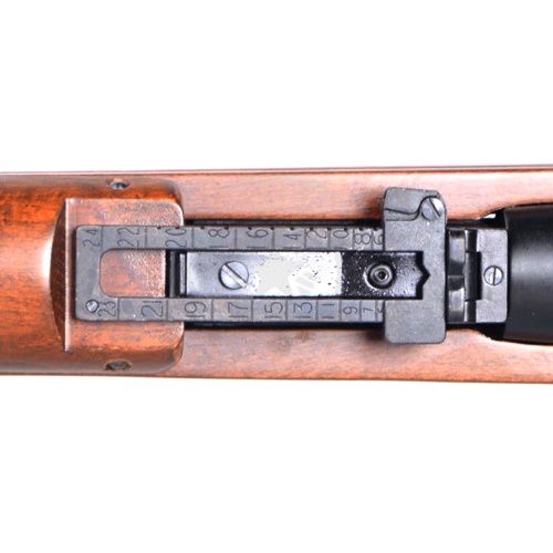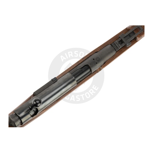 S&T Arisaka Type 38 Japanese Imperial Army bolt action airsoft rifle is a faithful recreation of one of history's most iconic World War era rifles. Built with a full metal receiver and realistic wood stock, this replica captures the traditional look and handling of the original Japanese service rifle. Measuring 1290 millimeters in length and weighing 2300 grams, the Type 38 provides authentic balance and feel while maintaining manageable weight for extended field use. Firing at approximately 360 fps with 0.20g BBs, the single shot bolt action mechanism delivers consistency and precision, making it an ideal rifle for collectors, reenactors, and players seeking a historically accurate long gun. The adjustable hop up system gives users control over BB trajectory, while the drop free 26 round magazine allows for smooth reloading. Finished in a classic brown tone, it embodies period-correct styling for realism on display or in use. Attention to historical detail is what defines this Arisaka replica. The rifle features the Imperial chrysanthemum marking engraved on the receiver, a flip up anti aircraft style rear sight, and a matte sunburst metal finish for added authenticity. The bolt action design feels solid and deliberate, offering the tactile satisfaction of manually chambering each round. Its realistic weight and natural wood grain finish make it a centerpiece for historical displays or themed airsoft events. Whether you are a collector looking for a standout piece, a reenactor seeking period correct gear, or an enthusiast who appreciates craftsmanship, the S and T Arisaka Type 38 delivers classic form with reliable performance.