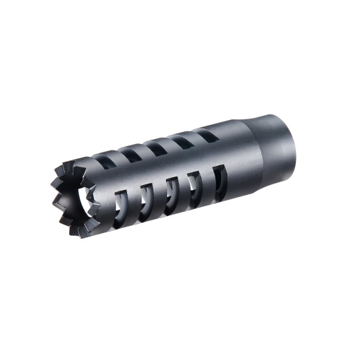 The Golden Eagle Muzzle Brake for FABARM STF 12 airsoft shotguns is a premium upgrade for players seeking enhanced aesthetics and realism on the field. Designed specifically to fit the VFC FABARM STF 12 platform, this muzzle brake brings a bold, aggressive look to your shotgun loadout. Made from high-quality metal, the construction is both rugged and reliable, capable of withstanding the demands of high-intensity gameplay. Its tactical styling mimics real-steel flash hiders, giving your airsoft shotgun a professional, mission-ready appearance while adding weight and presence to the muzzle end of your build. Whether you're customizing for realism or simply want to give your shotgun a performance-inspired edge, this muzzle brake offers a quick and easy upgrade. Installation is straightforward, providing a secure and stable fit for your compatible platform. Not only does it enhance the look of your FABARM STF 12, but the added mass up front also improves handling balance for more controlled aiming. The black finish blends perfectly with tactical gear, and the aggressive design makes your shotgun stand out at events or on the skirmish line. For airsoft players who value detail, durability, and function, the Golden Eagle Muzzle Brake is an ideal choice. Available now, it's a simple way to make a serious impact on both performance and style.